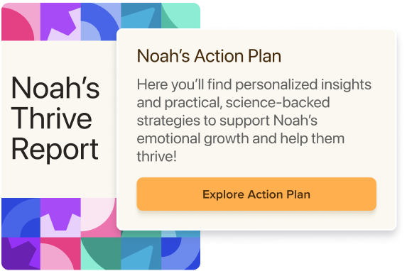 The Thrive Assessment creates a personalized roadmap based on your child's unique needs. It identifies their existing strengths while providing specific strategies to build resilience, strengthen relationships, boost confidence, and develop their sense of self. It's not just about understanding where they are, it's about knowing exactly how to help them grow.